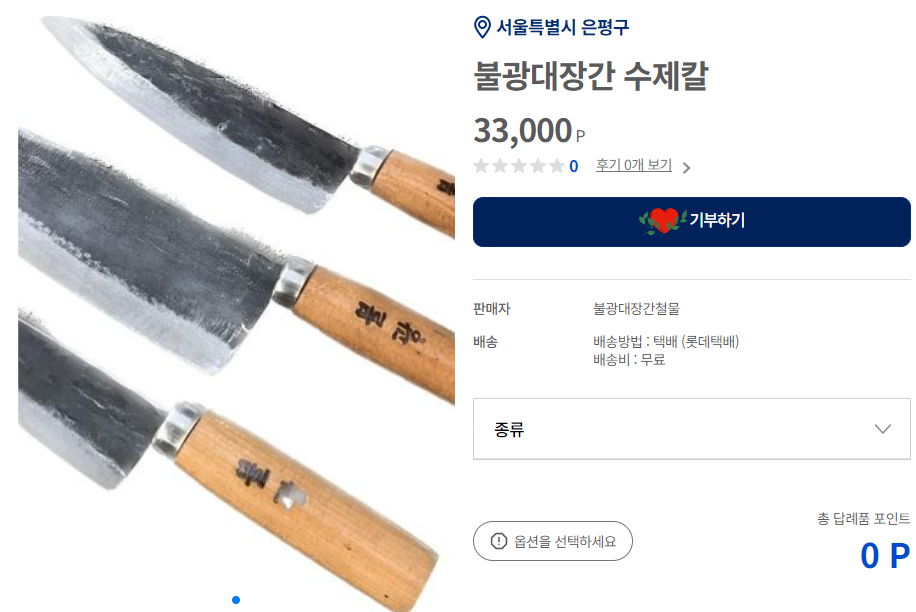 2013년 서울미래유산으로 선정된 불광대장간에서 직접 생산하는 제품이라고 합니다. 서울에 대장간이 있다니 신기하게 느껴집니다. 한번 사용해보고 싶어지네요. 검증은 할 수 없지만,, 답례품 선정되고 난 후 이 대장간 매출이 상승했을 것 같습니다.