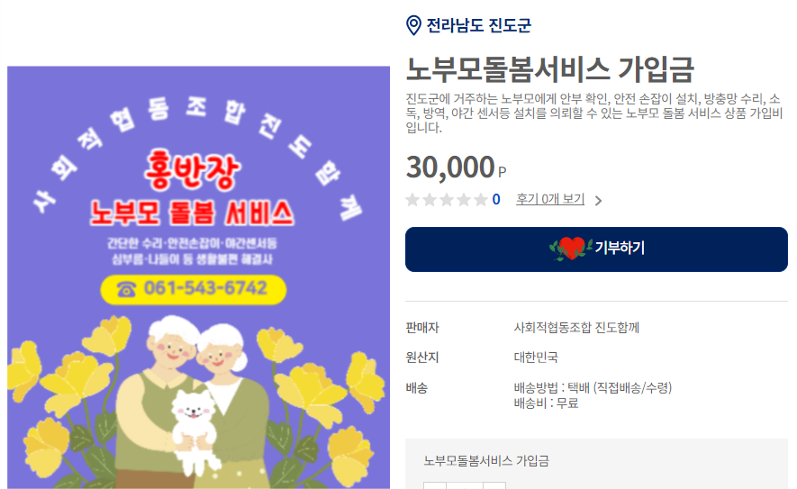 1) 노부모돌봄서비스 가입금(전라남도 진도군)