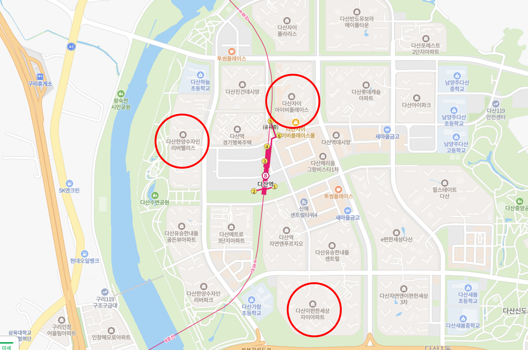 8호선이 다니고 왕숙천과 다산수변공원이 한 눈에 펼쳐지는 다산역 인근 아파트 실거래가를 알아보자. 신축이라 그 위용이 대단하다.